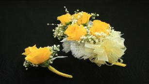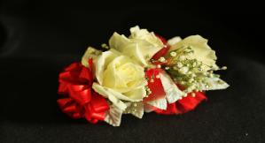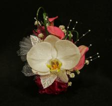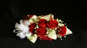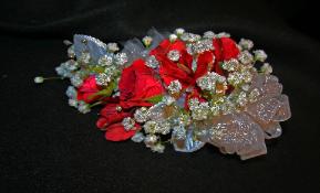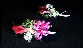 SAMPLE COURSAGE & BOUTONNIERE ALL CUSTOM MADE AND AVAILABLE IN OTHER COLORS AND STYLES. AVAILABLE IN FRESH FLOWERS AND ARTIFICIAL |