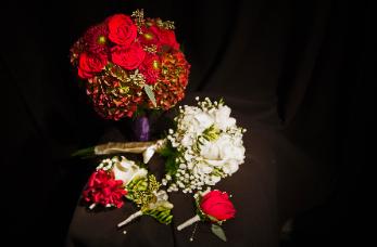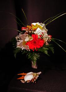 SAMPLE COURSAGE & BOUTONNIERE ALL CUSTOM MADE AND AVAILABLE IN OTHER COLORS AND STYLES. AVAILABLE IN FRESH FLOWERS AND ARTIFICIAL |